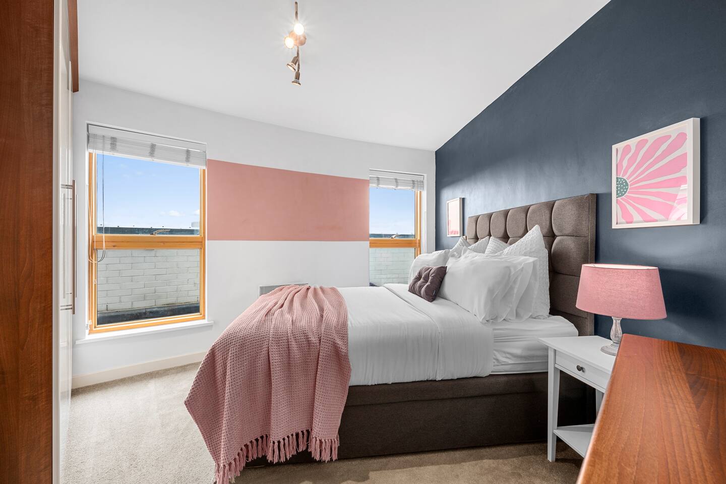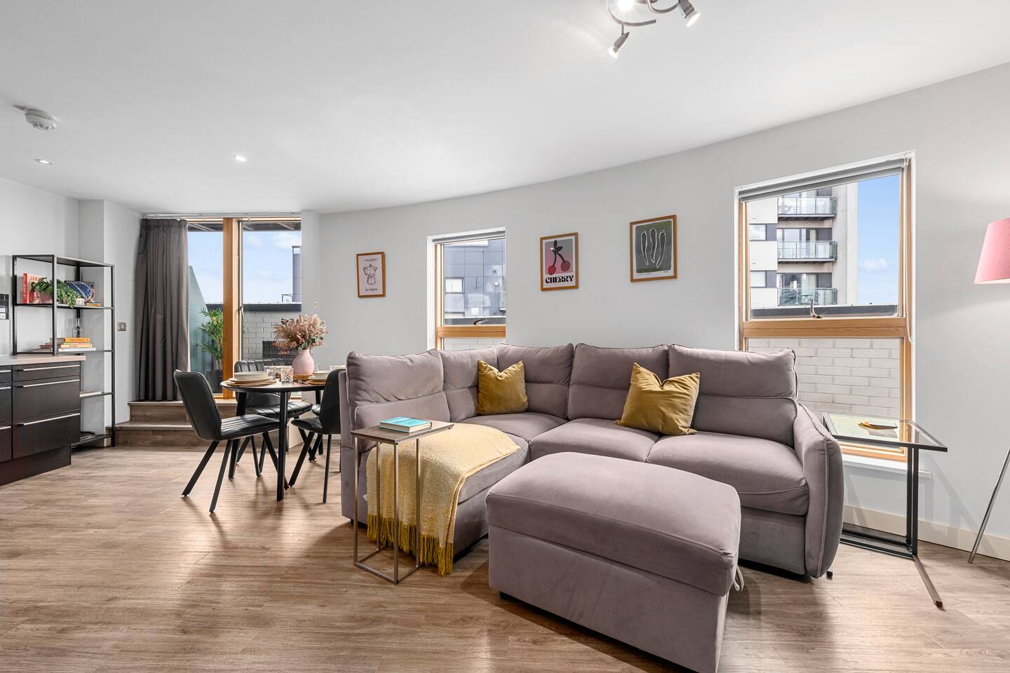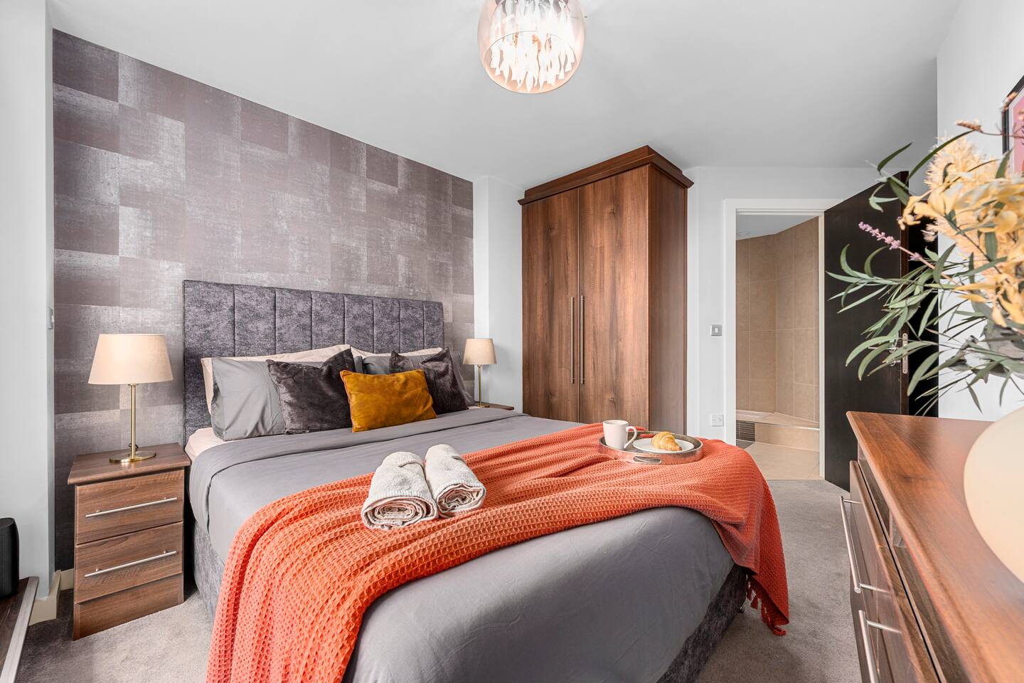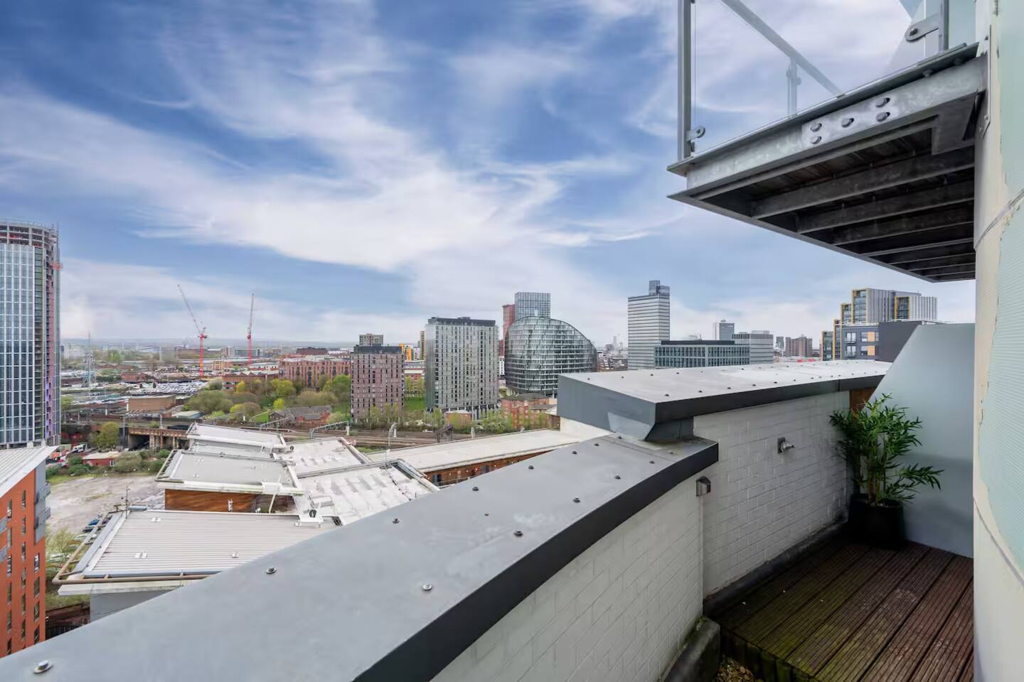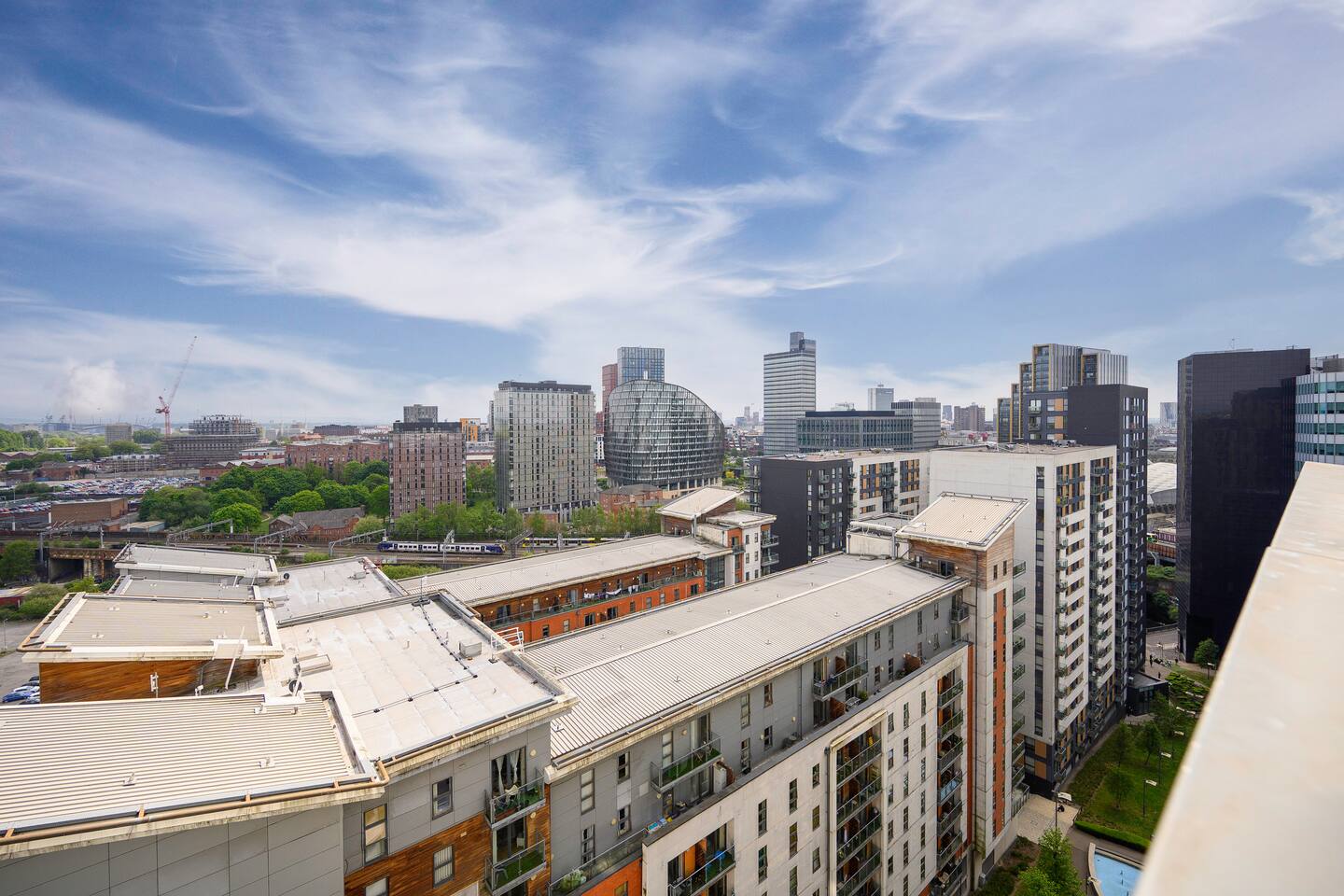 Enjoy breath taking views of Manchester and the surrounding hills of the peak district / Yorkshire Dales. LIVING AREA - Large and social open-plan living space - 50inch TV with Netflix, Prime Video & other apps - Free wi-fi - Super-comfy corner couch for putting your feet up - Dining area with space for 4 - Fully-equipped modern kitchen complete with integrated fridge-freezer, oven, microwave, kettle, toaster, and a dishwasher - There is also everything you need for cooking and dining, such as pots, pans, cooking utensil, plates & glassware etc BEDROOM 1 - King-size bed - Plenty of storage space - Sliding door to balcony outside with incredible city views EN-SUITE - Walk-in shower - Heated towel rail - Luxury toiletries & 100% cotton towels BEDROOM 2 - Double bed - Huge fitted wardrobes and drawers for ample storage space FAMILY BATHROOM - Extra-deep full bath with over-bath shower - Heated towel rail - Luxury toiletries & 100% cotton towels provided PARKING - The apartment has its own allocated parking spot in a secure underground carpark beneath the building