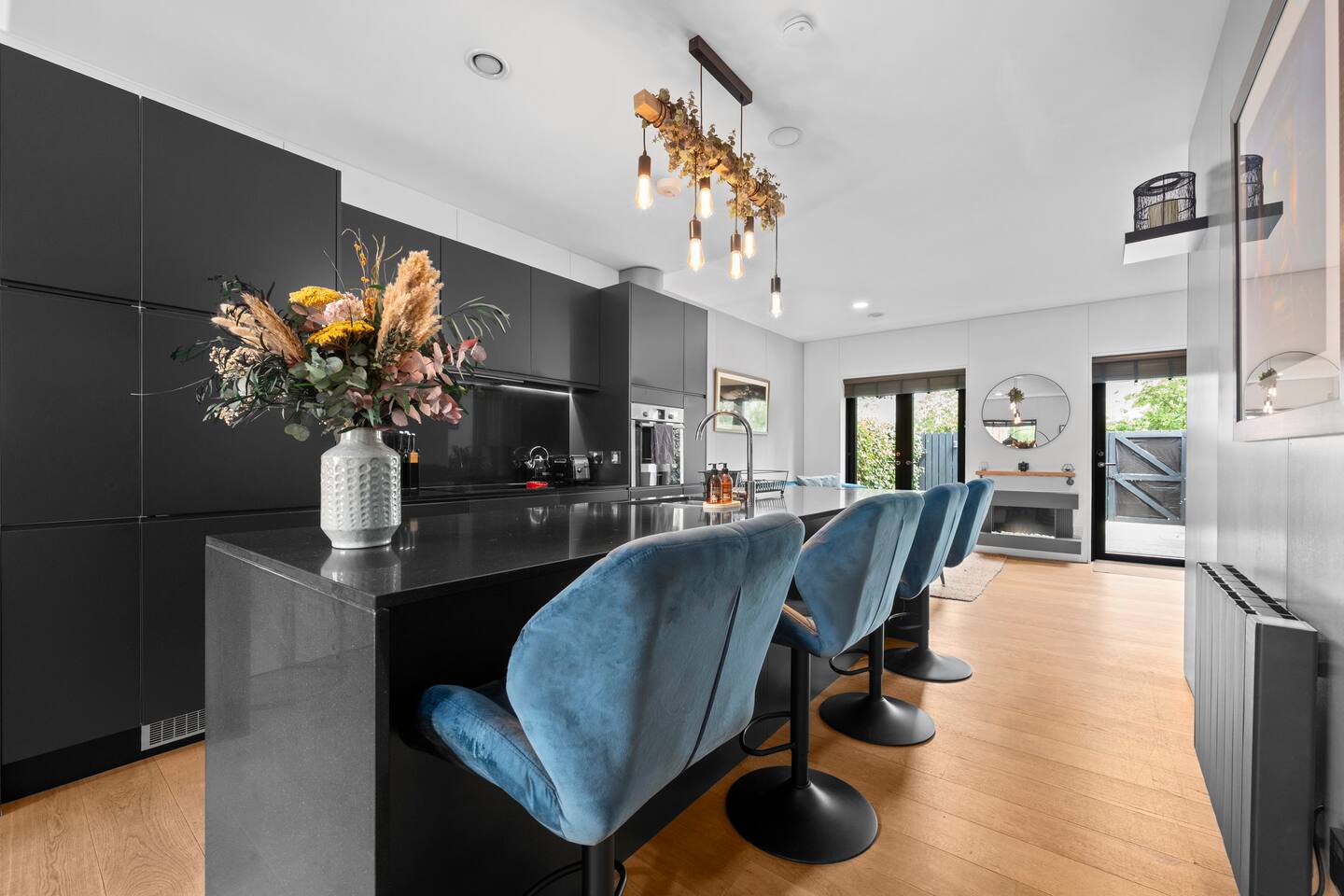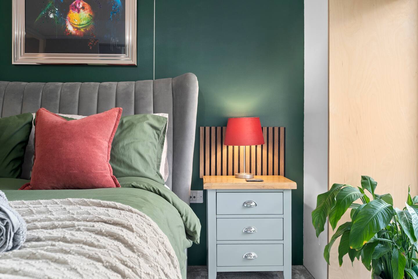 Enjoy the space of a large townhouse within walking distance to central Manchester as well as a sunny garden to relax in. LIVING AREA - Large and social open-plan living space with kitchen island with 4 stools - 55inch TV with Netflix, Prime Video & other apps - Free wi-fi - Super-comfy corner couch - Large dining area - Fully-equipped modern kitchen complete with integrated fridge-freezer, oven, microwave, kettle, toaster, and a dishwasher - There is also everything you need for cooking and dining, such as pots, pans, cooking utensil, plates & glassware etc BEDROOM 1 - Large king-size bedroom - 32 inch TV - Plenty of storage space - Large windows looking in to the garden BEDROOM 2 - Large king-size bedroom - Large fitted wardrobes - Electric height adjustable desk with monitor - Large window with a reading bench FAMILY BATHROOM - Full size bath with over-bath shower - Heated towel rail - Luxury toiletries & 100% cotton towels provided GARDEN - Outdoor furniture with a table and seats to fit 4 - Patio and grass area for relaxing PARKING - The house has a driveway with enough space for 2 cars